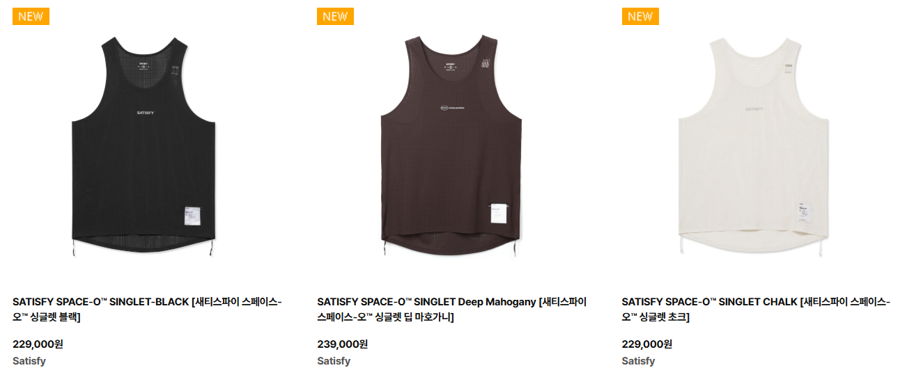 - 새티스파이 러닝(Satisfy Running) : 프리미엄 러닝웨어의 끝판왕! 가격이 매우 높지만 혁신적인 원단과 디자인을 자랑.