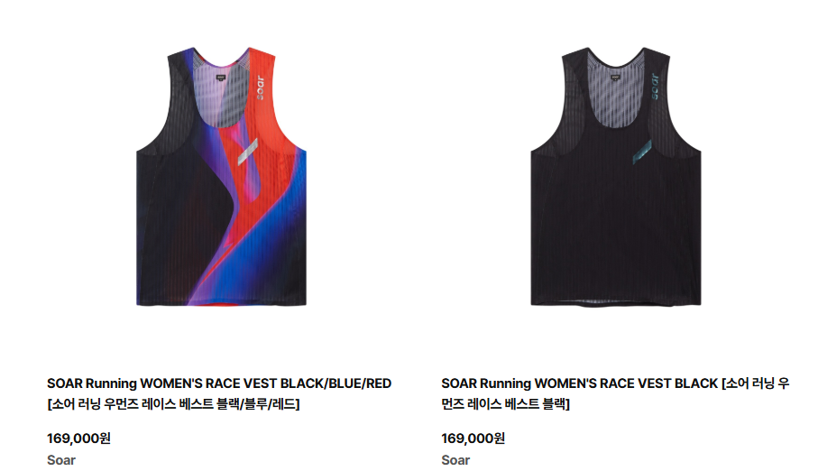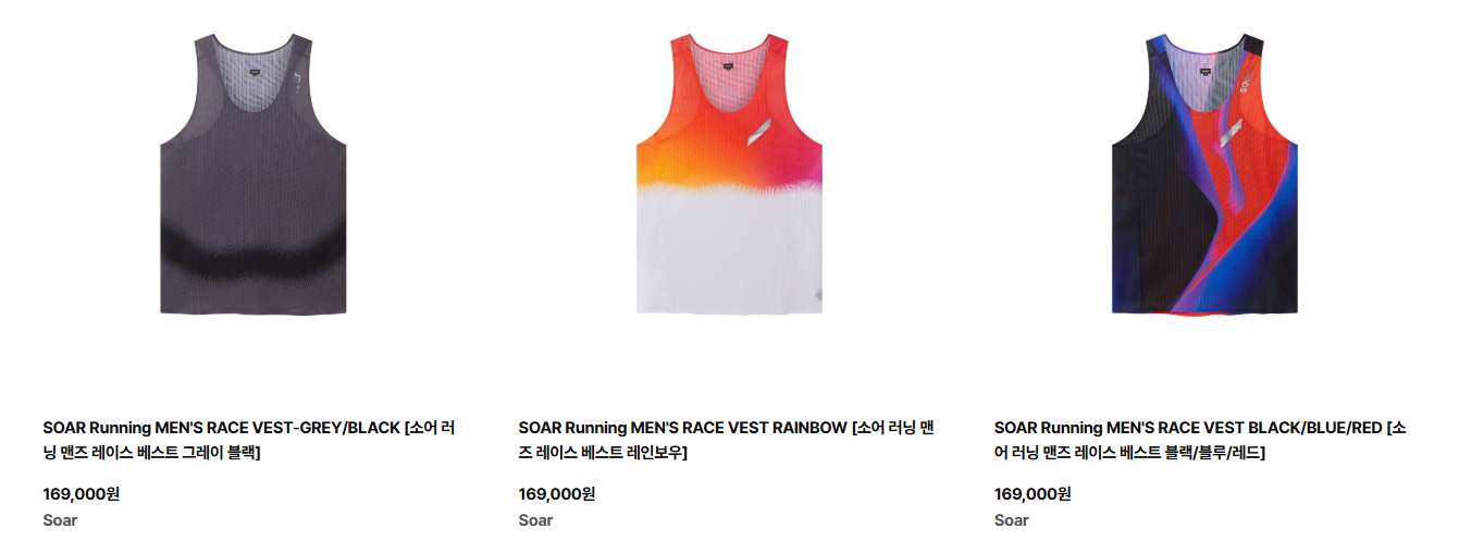 - 소어(SOAR) : 유럽 러너들에게 인기 높은 기술력 중심의 브랜드! 가볍고 퍼포먼스 중심의 제품이 많음.