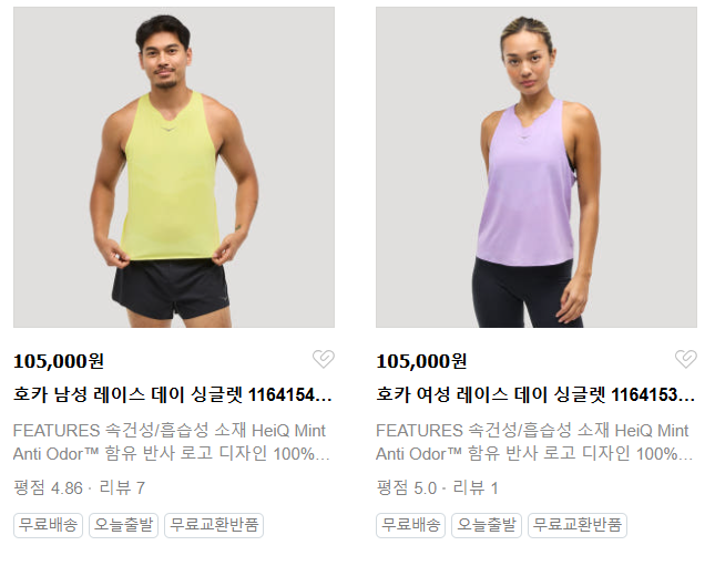 호카는 러닝화뿐만 아니라 의류에서도 좋은 평가를 받고 있으며, 싱글렛 역시 가볍고 기능성이 뛰어나 마라톤 러너들에게 추천할 만합니다.