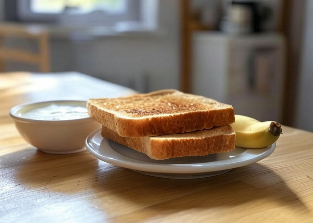 - 통곡물 토스트 + 땅콩버터: 소화가 잘되면서도 에너지를 천천히 공급
