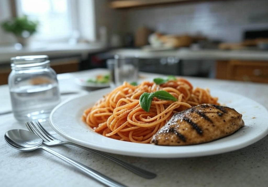 - 파스타(토마토소스 또는 올리브오일 베이스) + 닭가슴살: 탄수화물 + 단백질 조합